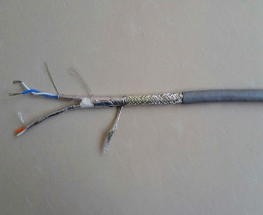 2線對4芯(2x 2x24AWG)(2*2*0.2)(2*2*0.5)(2*2*0.75)(2*2*1.0)(2*2*1.5)多股絞合鍍錫銅絲,PE絕緣護套;為適用于復雜的工業噪聲環境,特采用鋁箔/聚酯復合帶100%屏蔽率+鍍錫銅編制網90%屏蔽率共雙重屏蔽,并附有獨立TC接地導體,工業灰色PVC外護套,特性阻抗120歐姆 。