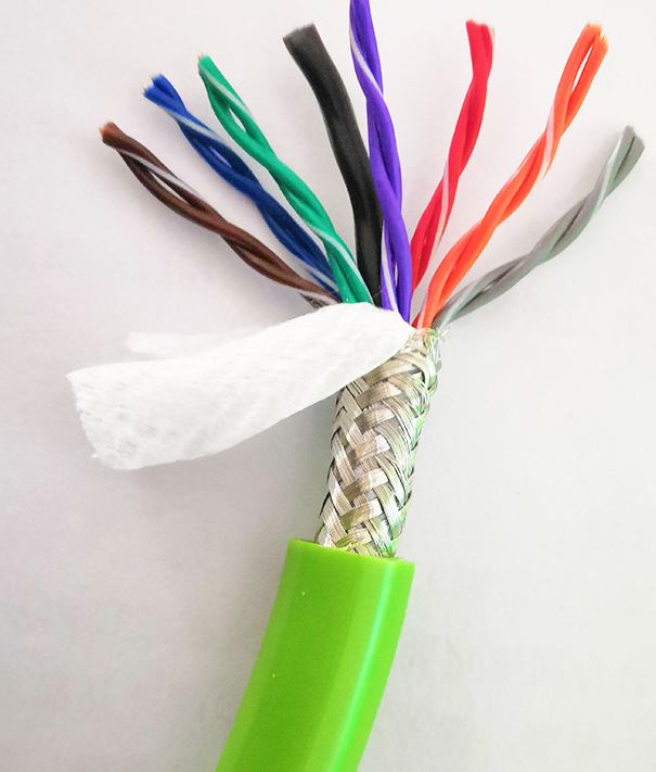 雙絞屏蔽拖鏈電纜TRVVSP-8*2*0.5應用于數據傳輸信號要求較高的場合,是國內拖鏈電纜中較為常見的具有對絞結構并帶屏蔽的拖鏈電纜型號。